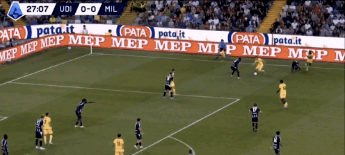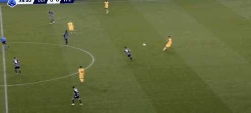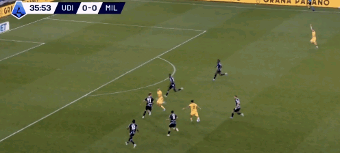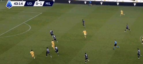 34:25,依旧是乌迪内斯的右路攻势,莫德里奇横移补位但没再跟防对手肋部切入,乌迪内斯也没有选择分球。 在拉比奥特前提覆盖后,边路的保护是缺失的。而乌迪内斯在肋部持球向前压力不大,中锋凯南戴维斯身高接近1米9的情况,上半场只完成了4次传中(米兰11次)。