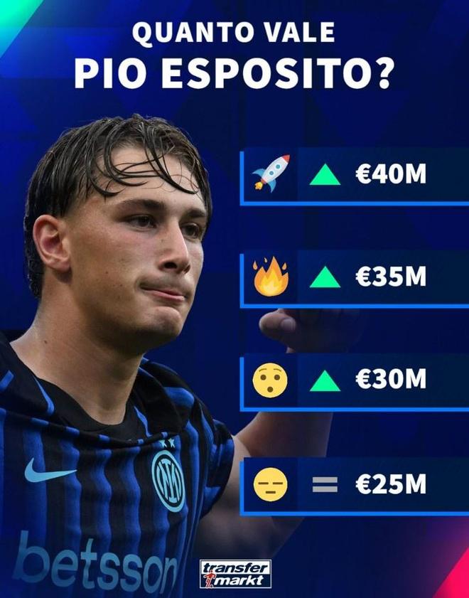 “福法纳?他是完美的中场补充。如果他还能像在对乌迪内斯的比赛中那样进球…… 这位法国球员拥有非常突出的能力,而在莫德里奇和拉比奥特的身边,他能更容易地展现这些特点。” 消息来源:米兰体育报 3 - 国米新星个人价格提升很多的 德转将在下月份更新意甲球员身价,国米20岁小将埃斯波西托身价预计会有上涨。