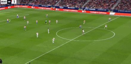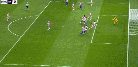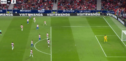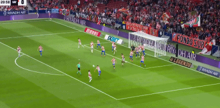 第39分钟,格列兹曼边路传中,阿尔瓦雷斯包抄抢点打高