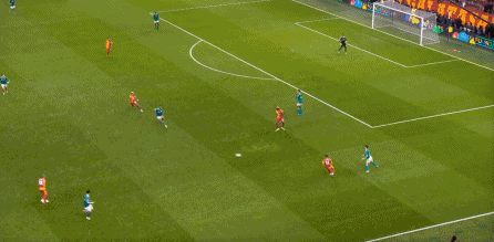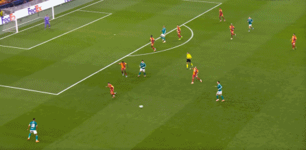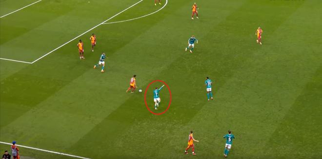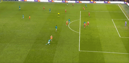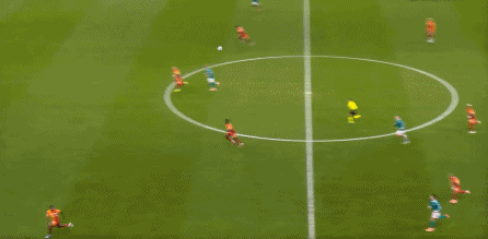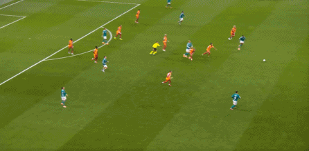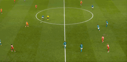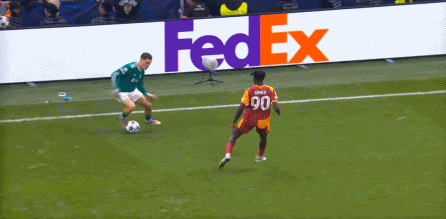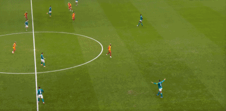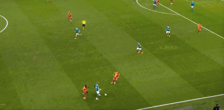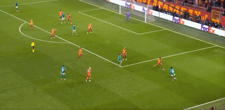 尤其是第25分钟这次,埃基蒂克在接到维尔茨传球时出现失误,结果被加拉塔萨雷穿越中场,完成由左至右的横移线路,让奥西门获得了射门的机会: