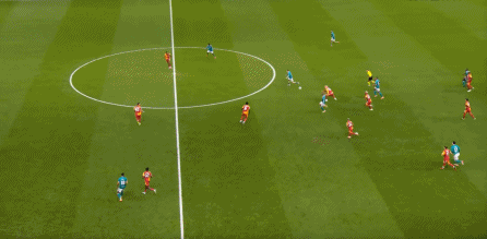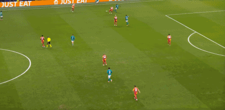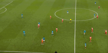 但在无球的时候,他也会经常落到索博斯洛伊的身侧,帮助利物浦进行防守: