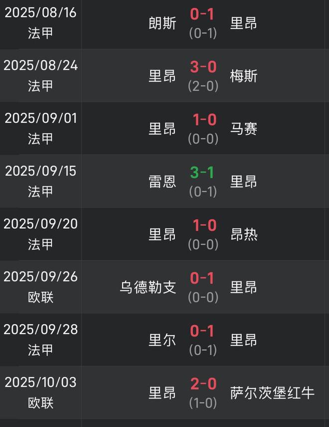 8场比赛7场零封!里昂提升防线强度,本赛季仅法