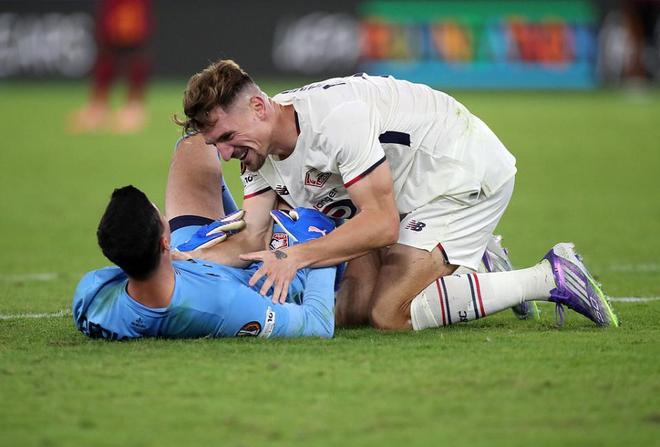 而到了第3次,罗马队选择换成了阿根廷射手苏莱来主罚,结果他射出的点球踢向右下角,依然被厄泽尔扑出。看到两位队友这么不争气,罗马球员沙拉维都直接惊呆愣在原地。