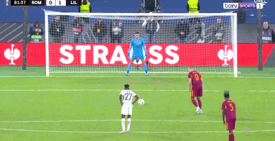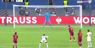 这一幕发生在比赛第80分钟,里尔球员禁区内手球犯规,罗马获得点球,这本是罗马绝平的绝佳良机。