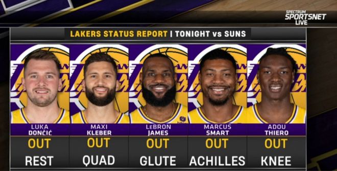 本场湖人有詹姆斯、东契奇、斯马特、克勒贝尔与蒂耶罗缺席,艾顿与拉拉维亚迎来加盟首秀。太阳有杰伦-格林、马威因伤缺席,狄龙迎来加盟首秀。