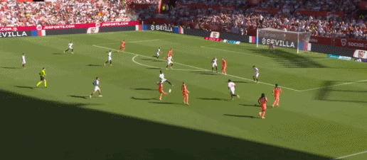 如果说桑切斯主罚点球、12码线破门只是一个意外情况,那么孔德在中场丢球之后、塞维利亚打出的快速反击,堪称是彻底击溃了巴萨的整个防守。从中路分到左路,再回到右边路的后套上击败门将,罗梅罗的速度以及队友给球的准星完美,巴塞罗那在高位压上之后根本回不来,不管是中后卫的回防速度、还是后腰的保护力度都远远不够,因此丢球是必然的。