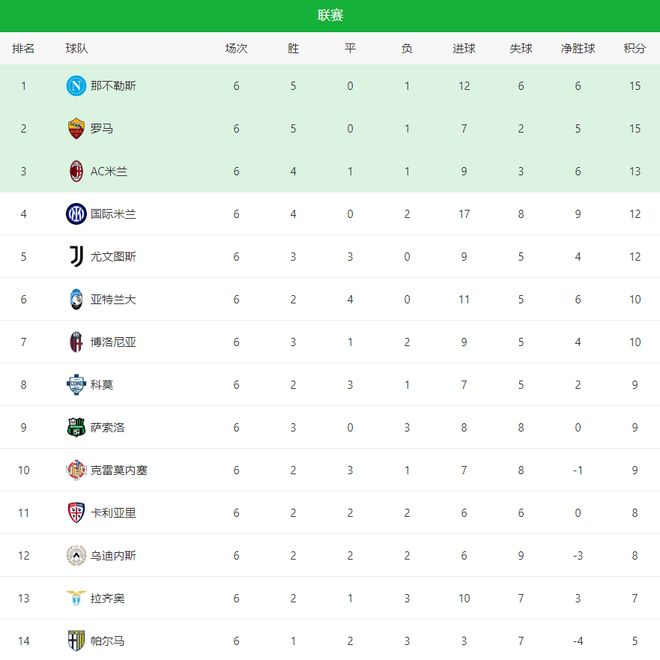 新赛季的欧洲五大联赛,当属意甲乱之又乱,归属最终原因是多支球队正在崛起,其中红狼罗马表现最为强劲,有了回归欧洲一流强队的趋势,昨夜今晨第6轮进行了多场激战后,排名第1-10仅仅只差5分。率先出战的罗马2-1逆转佛罗伦萨,首次登上积分榜首位;随后那不勒斯同样以逆转的方式2-1击败热那亚,并以净胜球的微弱优势反超登顶积分榜;AC米兰与尤文图斯0-0踢平,近两个赛季大黑马博洛尼亚主场4-0大胜比萨,状态有所回暖。