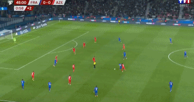 连过六人,梅西与C罗的完美结合 比赛第45+2分钟,补时阶段,姆巴佩接到队友埃基蒂克的传球后,从中场附近启动,开启了一段令人窒息的个人表演。他凭借出色的控球、爆发力和变向能力,连续突破至少六名防守球员,一路杀入禁区,最后冷静地将球送入球门远角,为法国队首开纪录。