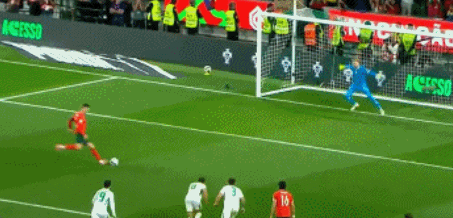 第73分钟,特林康内切兜射打在了对方球员的手上,主裁判给了点球,随后C罗主罚被门将凯莱赫用脚挡出,葡萄牙仍然无法打破僵局。