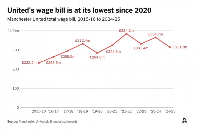 自拉特克利夫从格雷泽家族手中接管足球运营以来,为扭转财务局面,他已推行一系列成本削减措施。一项涉及多达450个岗位的裁员重组计划,加之无缘欧冠导致的奖金缺失,共同使曼联的工资支出降至3.132亿英镑,为19/20赛季以来的最低水平。 然而,俱乐部因一系列运营决策承担了高昂代价:解雇主帅滕哈赫及其团队花费1040万英镑,而四个月前才刚触发其续约条款;体育总监阿什沃斯上任仅五个月便遭解雇,又产生410万英镑支出。这些特殊项目成本总计达到3660万英镑。 拉特克利夫此前甚至警告,若不严格控制运营成本,曼联可能在圣诞节前面临“资金耗尽”的风险。尽管他在年初注资8000万英镑,截至6月底,俱乐部的现金储备也仅为8610万英镑。 更令人担忧的是曼联在转会市场上的持续高投入与低回报。上赛季俱乐部在球员转会上支付了2.79亿英镑现金,比19/20赛季原纪录高出近6000万英镑。拉特克利夫在接受BBC采访时坦言:“我们今年夏天不是在签新球员,而是在继续支付安东尼、卡塞米罗、奥纳纳、霍伊伦和桑乔的转会费。” 与此同时,曼联总债务已达到6.37亿英镑,高于去年的5.466亿英镑,部分原因是本财年从循环信贷中净借款1.3亿英镑。俱乐部可能在今年夏季再次动用信贷额度支持转会操作,这意味着债务水平或将进一步上升。