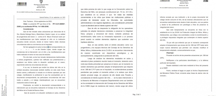 足球比分网10月03日讯 阿根廷媒体infobae消息,旺达指控伊卡尔迪伤害她与前夫的儿子,司法部门撤销了相关指控,旺达败诉。 报道称,在旺达与前夫马克西-洛佩斯代表其某个儿子提出指控后,帕切科总检察院已裁决终止对伊卡尔迪涉嫌轻微伤害案的调查。 此项判决是在综合分析父母证词、涉事未成年人就读的比森特-洛佩斯学校提交的文件资料,以及布宜诺斯艾利斯市儿童权益委员会出具的评估报告后作出的。根据搜集的信息,该未成年人在其教育机构曾陈述了若干与被告共同生活的情况。听取孩子陈述的教师也在检察官面前作证,证实了学校报告中的记录,并补充说明了针对该未成年人开展的多学科干预细节。 检方指出,教育机构、监护人及布宜诺斯艾利斯自治市儿童与青少年权益委员会的技术团队协同采取了心理辅导与陪伴机制,旨在确保未成年人权益保障。判决书认定,目前既无客观证据支撑犯罪假设,亦无待查证的证据可推动对伊卡尔迪的刑事追诉。