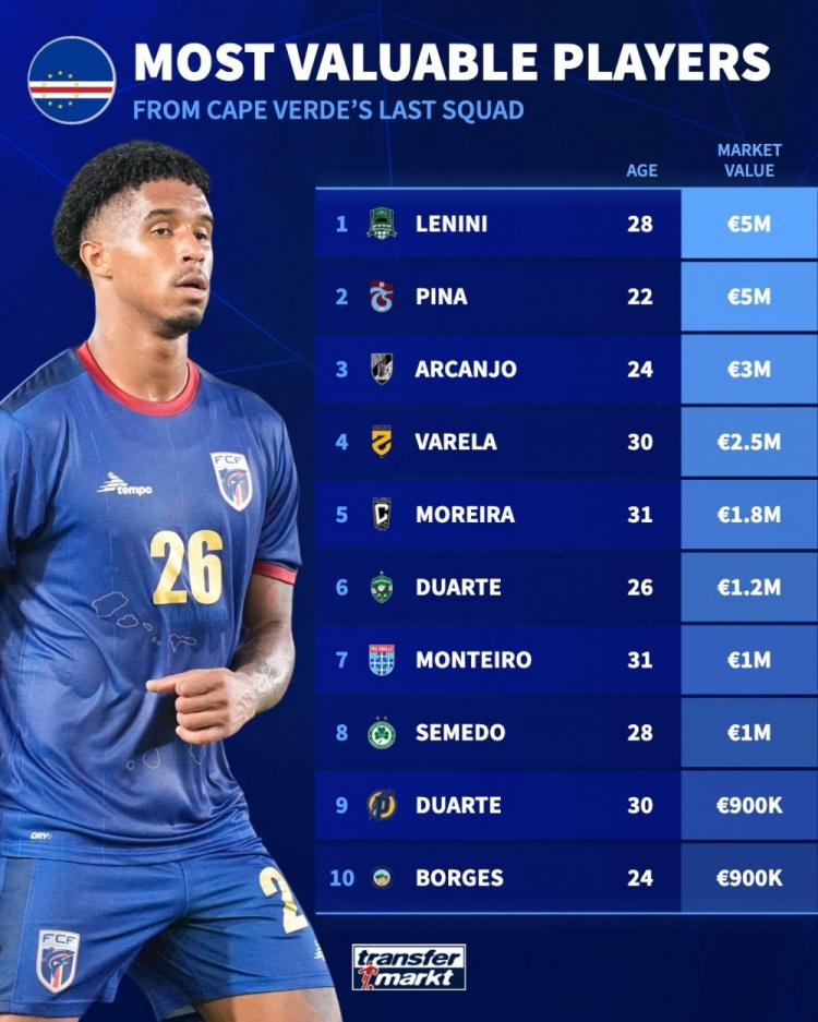 进军世界杯!佛得角总身价2700万欧,排名非洲球