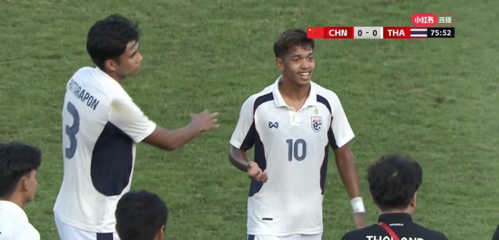 足球比分网10月14日讯 U22国足vs泰国队下半场,泰国队换人出状况,与裁判沟通,中国队也过来调解。