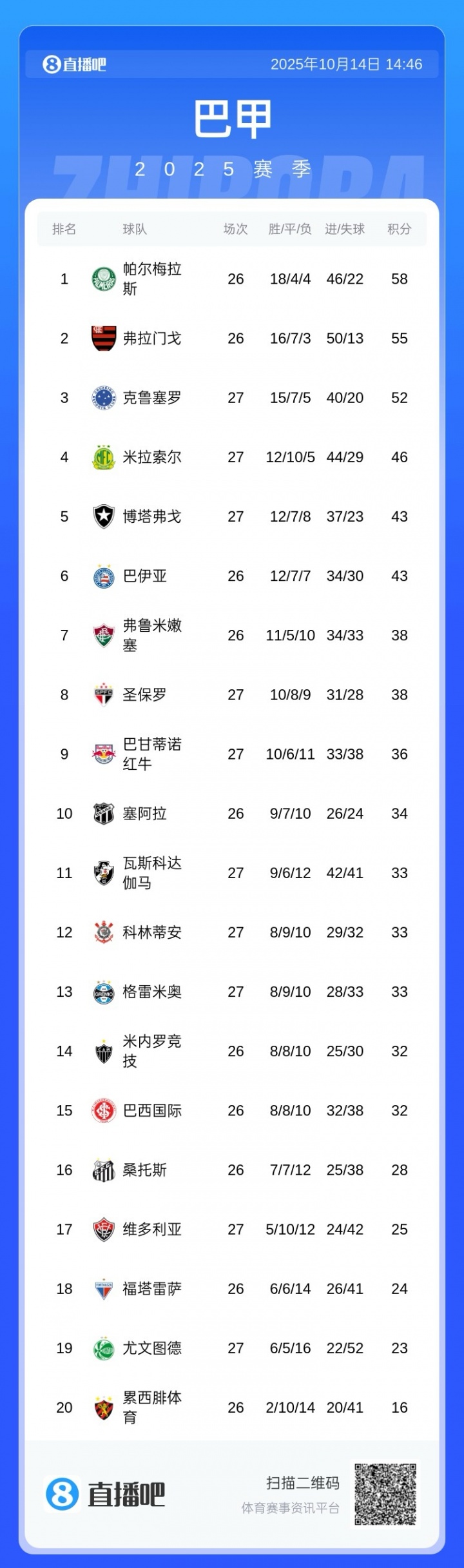 足球比分网10月14日讯 阿斯报消息,桑托斯未收到迈阿密国际对内马尔的正式报价, 内马尔与巴甲球队桑托斯的合同将在今年底到期,此前邮报报道称,迈阿密国际正在探索引进内马尔的可能,以重组昔日巴萨令足坛闻风丧胆的“MSN”组合。 不过阿斯报表示,目前来看内马尔加盟迈阿密国际的可能性不大,“MSN”重组的浪漫设想尚难实现,因为桑托斯甚至还没有收到迈阿密国际对内马尔的正式报价。另一方面,桑托斯计划留住内马尔,但这取决于俱乐部在巴甲的前景。 桑托斯目前在巴甲处境危急,26轮28分排名第16位,面临两年内第二次降级的严重风险。若桑托斯成功保级,内马尔大概率将留队;若再度降级,迈阿密国际的希望将重燃。 阿斯报表示,迈阿密国际对内马尔的兴趣并非新鲜事,自他离开沙特球队利雅得新月后,这个构想就像一个美好的传闻,在世界各地球迷间流传。但随着内马尔签约桑托斯,迈阿密国际暂时放弃了这个主意。 内马尔9月右大腿股直肌受伤,目前仍在养伤,预计将于11月底复出,正好赶上巴甲联赛决定性的收官阶段,全力拯救濒临降级的桑托斯。 内马尔与桑托斯的合同将于2025年12月31日到期。保级成败不仅关乎桑托斯的形象与声誉,也关系到内马尔的续约问题,这位历史偶像亦是俱乐部当前最重要的资产。迈阿密国际正密切关注。