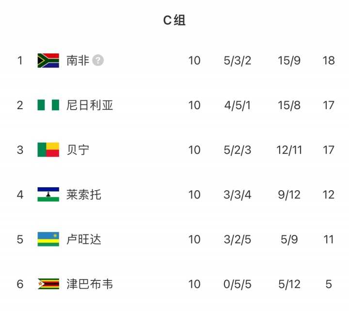 足球比分网10月15日讯 世预赛非洲区小组赛C组,南非3-0战胜卢旺达,锁定小组第1,直通2026世界杯!