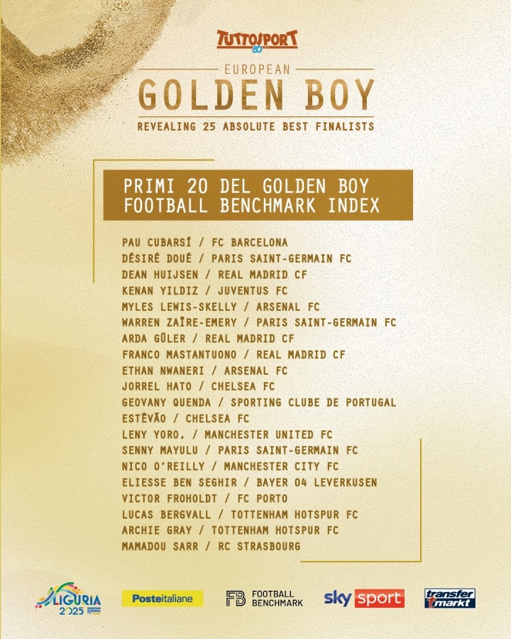 金童奖公布25人候选,库巴西、杜埃、怀森、斯凯利、居莱尔、小贝林厄姆在列。 收儿子20万欧转账被要求缴税!法媒:登贝莱母亲和税务部门打官司