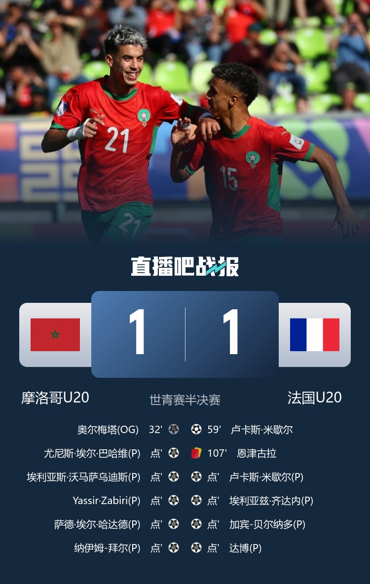 【战报新闻】 首进世青赛决赛!摩洛哥点球淘汰法国,将对阵阿根廷哥伦比亚胜者