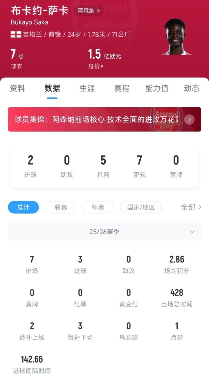涨还是跌?德转预热萨卡身价变动:最低1.2亿欧