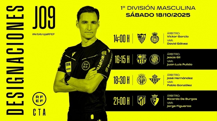 足球比分网10月17日讯 西班牙足协官方公布了西甲联赛第9轮部分比赛的裁判安排,其中,赫苏斯-吉尔执法巴塞罗那主场迎战赫罗纳的比赛。 西甲第9轮部分场次裁判安排(开球时间为北京时间): 塞维利亚VS马洛卡(10月18日20:00) 主裁判:维克托-加西亚,VAR裁判:大卫-加尔维斯 巴塞罗那VS赫罗纳(10月18日22:15) 主裁判:赫苏斯-吉尔,VAR裁判:胡安-路易斯-普利多 比利亚雷亚尔VS贝蒂斯(10月19日0:30) 主裁判:何塞-埃尔南德斯,VAR裁判:巴勃罗-冈萨雷斯 马竞VS奥萨苏纳(10月19日3:00) 主裁判:里卡多-德-布尔果斯,VAR裁判:豪尔赫-费格罗阿 |