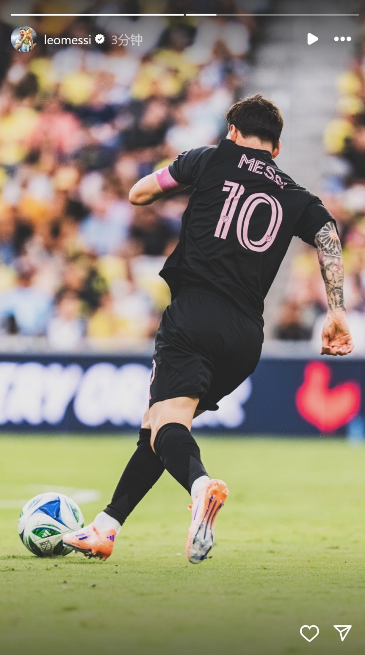 足球比分网10月19日讯 美职联比赛,迈阿密国际客场5-2击败纳什维尔,常规赛第三名收官。 此役梅西3射1传,帮助迈阿密国际取胜,获得Sofascore的10分评价,梅西赛后更新社媒动态,晒出自己的比赛背影照片。 |