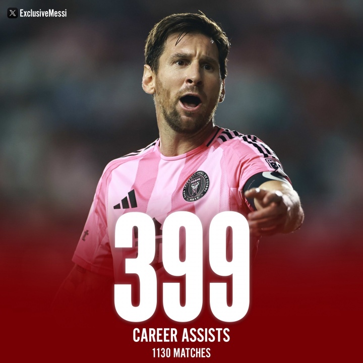 里程碑即将到来!38岁梅西已送出399助,距离40