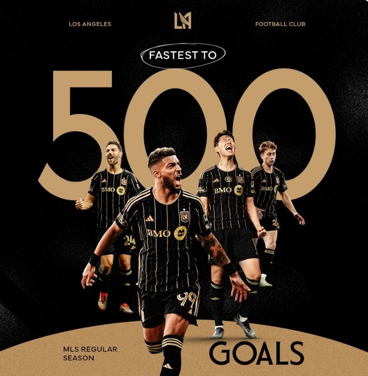 洛杉矶FC达成常规赛500粒进球里程碑,用时260场创