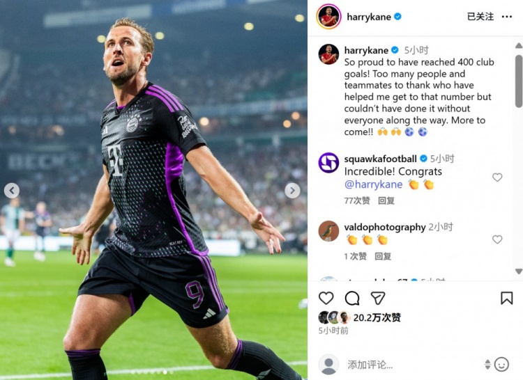 凯恩社媒纪念俱乐部生涯400球里程碑:没有大家