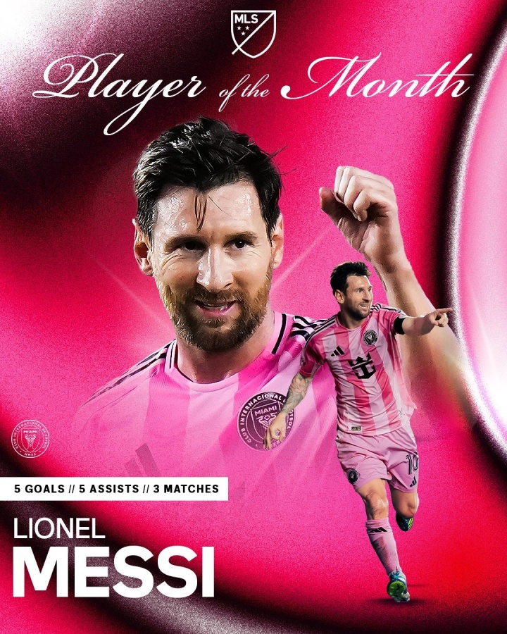 3场5球5助攻!美职联官方:38岁梅西当选美职联