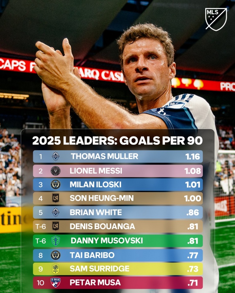 足球比分网10月22日讯 美职联官方统计了球员本赛季每90分钟的进球数量,并列出榜单,穆勒居首,梅西次席。 2025赛季美职联每90分钟进球榜: 穆勒(温哥华白浪)——1.16 梅西(迈阿密国际)——1.08 伊洛斯基(费城联合)——1.01 孙兴慜(洛杉矶FC)——1.00 布赖恩-怀特(温哥华白浪)——0.86 博安加(洛杉矶FC)——0.81 穆索夫斯基(西雅图海湾人)——0.81 巴里博(费城联合)——0.77 萨里奇(纳什维尔)——0.73 佩塔尔-穆萨(达拉斯)——0.71 |