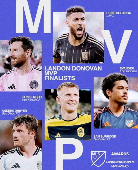 有悬念?美职联年度最佳球员候选名单:梅西领
