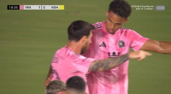 足球比分网10月25日讯 美职联季后赛首轮,迈阿密国际首回合3-1击败纳什维尔抢占先机,本场比赛梅西梅开二度,并参与了另一个进球。 在上半场进球后,梅西对自家队友伊安·弗雷面授机宜;到了下半场第62分钟,梅西一次分球给边路套上的弗雷,后者传中助攻禁区内阿连德破门。 |
