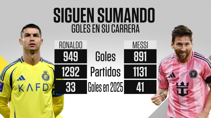 足球比分网10月25日讯 美职联季后赛首场,梅西梅开二度,迈阿密3-1纳什维尔。 ESPN统计C罗、梅西进球数: C罗1292场进949球,2025年进33球 梅西1131场进891球,2025年进41球