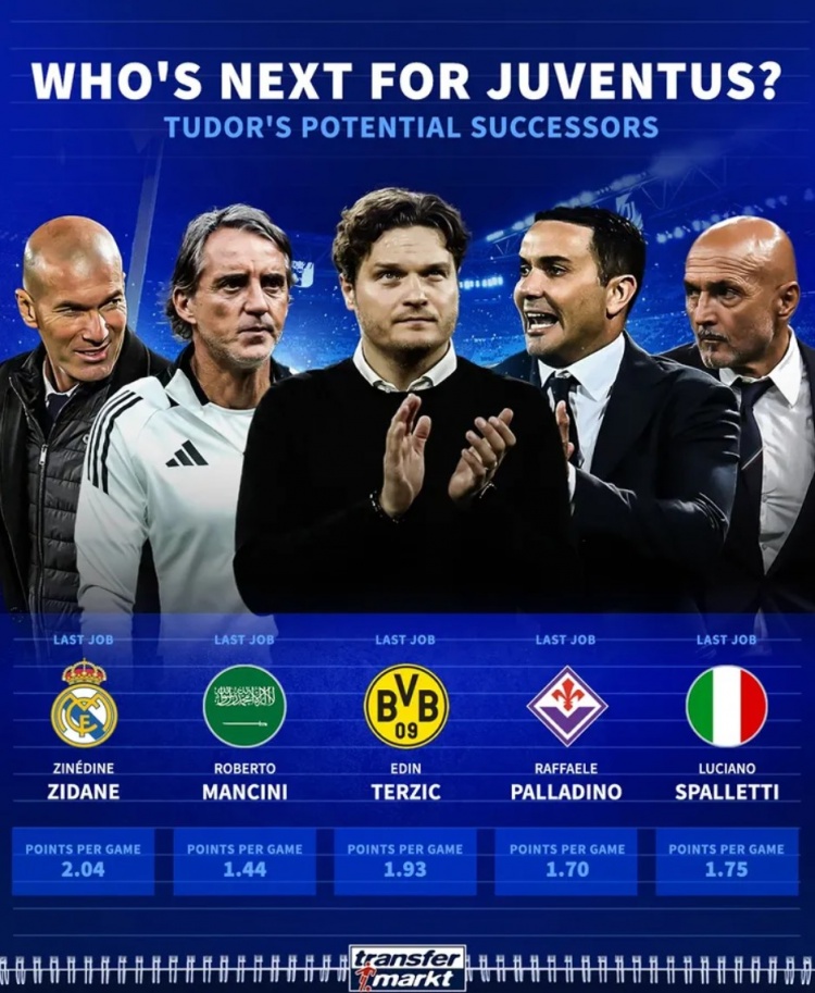 会是谁?德转列尤文新帅5大热门:齐达内、曼奇
