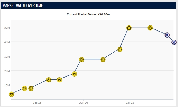 足球比分网12月10日讯 欧冠联赛阶段第6轮,切尔西1-2不敌亚特兰大。 本场比赛吉滕斯首发出战踢满全场,1次射门1次射正,5次尝试过人3次成功。9次丢失球权。媒体评分6.4分。 吉滕斯现年21岁,夏窗切尔西花费5600万欧从多特签下吉滕斯,签约至2032年。本赛季吉滕斯各项赛事出场18次,出场时间830分钟,打进1球送出5次助攻。其中英超和欧冠赛场出场16次,未收获进球,送出3次助攻。 昨日德转身价更新后,吉滕斯身价再降500万,现在身价4000万欧。