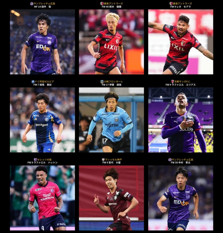 足球比分网12月9日讯 今日,J联赛官方公布了2025赛季36名优秀球员,同时这36名球员也是联赛MVP和最佳十一人阵容候选。 具体如下: 门将:早川友基(鹿岛鹿角)、小岛亨介(柏太阳神)、大迫敬介(广岛三箭) 后卫:植田直通(鹿岛鹿角)、小池龙太(鹿岛鹿角)、古贺太阳(柏太阳神)、原田亘(柏太阳神)、望月海辉(町田泽维亚)、佐佐木旭(川崎前锋)、铃木义宜(京都不死鸟)、福田心之助(京都不死鸟)、图勒(神户胜利船)、山川哲史(神户胜利船)、荒木隼人(广岛三箭)、佐佐木翔(广岛三箭)、中野就斗(广岛三箭)、安藤智哉(福冈黄蜂) 中场:久保藤次郎(柏太阳神)、小泉佳穗(柏太阳神)、小屋松知哉(柏太阳神)、山本悠树(川崎前锋)、胁坂泰斗(川崎前锋)、马修斯·布埃诺(清水心跳)、稻垣祥(名古屋鲸)、卢卡斯·费尔南德斯(大阪樱花)、扇原贵宏(神户胜利船)、佐藤龙之介(冈山绿雉)、田中聪(广岛三箭) 前锋:铃木优磨(鹿岛鹿角)、莱奥·塞阿拉(鹿岛鹿角)、相马勇纪(町田泽维亚)、伊藤达哉(川崎前锋)、埃利亚斯(京都不死鸟)、拉斐尔(大阪樱花)、宫代大圣(神户胜利船)、中村草太(广岛三箭)