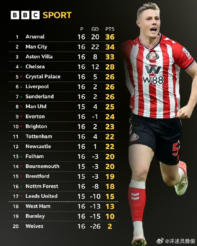 足球比分网12月15日讯 英超第16轮,曼城3-0水晶宫,距榜首仅2分。赛后著名评述员詹俊老师对本场比赛发表个人看法。 詹俊:“凛冬已至,‘北境之王’哈兰德君临天下。这场比赛他的头球破门、头球摆渡和回防时的头球解围是亮点之一,与另外两支争冠球队相比,仍不断涨球的哈兰德是曼城最大的优势。连场助攻的谢尔基以灵动的球风得到越来越多球迷的喜爱,逐渐成为球队的前场节拍器。瓜迪奥拉的361玩得不错,唯一让人担心的就是尼科-冈萨雷斯在这个位置还不够成熟。榜首三强一共只差三分,争四集团之间也是差三分,英超每轮都有足够多的热点话题。百舸争流 奋楫者先.............”