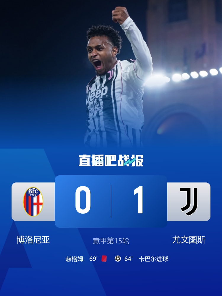 意甲第15轮,尤文客场1-0战胜博洛尼亚,卡巴尔替补制胜。 【其他资讯】 龙哥暂缓一口气!皇马结束连败,将迎国王杯、西超杯多线作战