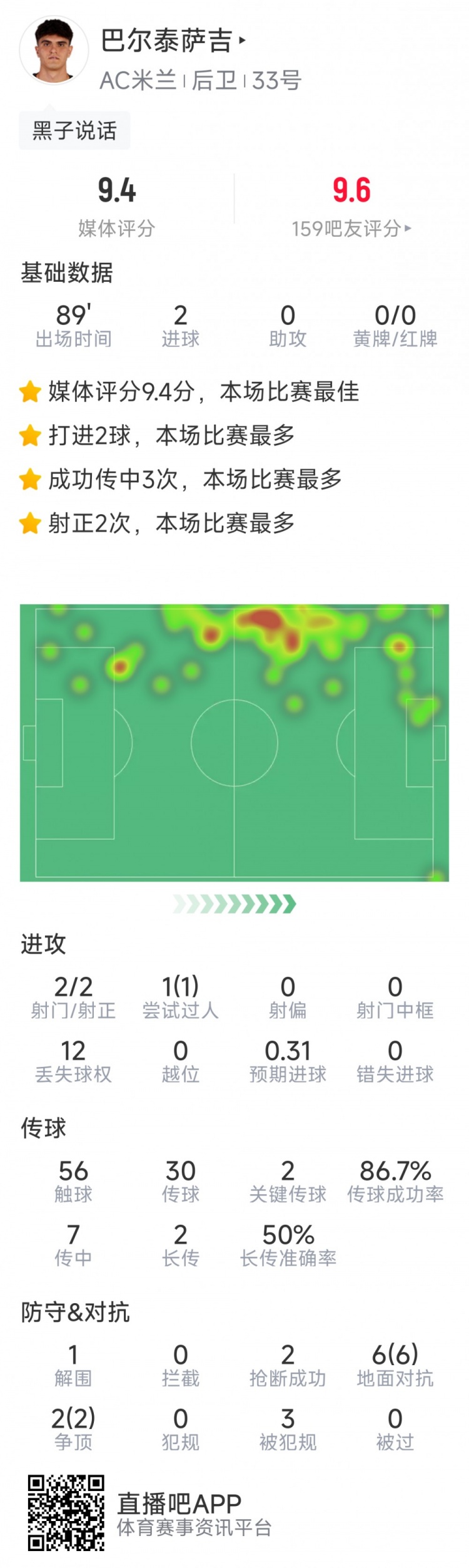 梅开二度!巴尔泰萨吉当选对阵萨索洛一役米兰