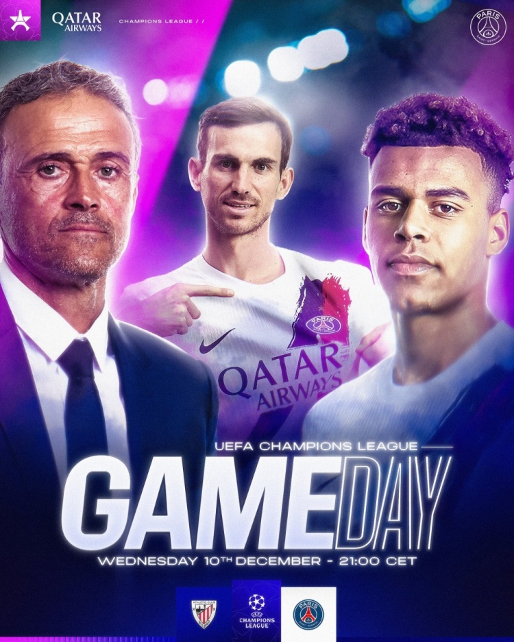 足球比分网12月10日讯 北京时间明天凌晨,巴黎将在欧冠联赛阶段第6轮比赛中客场对阵毕尔巴鄂竞技。 巴黎官方社媒晒出此役的赛前海报,主帅恩里克携法比安、杜埃出镜。 巴黎4胜...