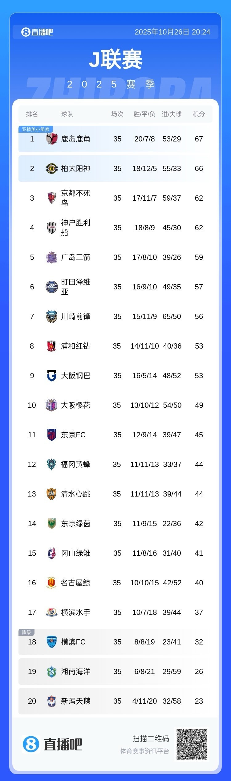 足球比分网10月26日讯 J1联赛第35轮,湘南海洋客场0-1不敌福冈黄蜂,提前3轮确定降级,时隔8年再度回到J2联赛。 本赛季湘南海洋在开局阶段一度保持良好势头,前三轮取得三连胜,但...