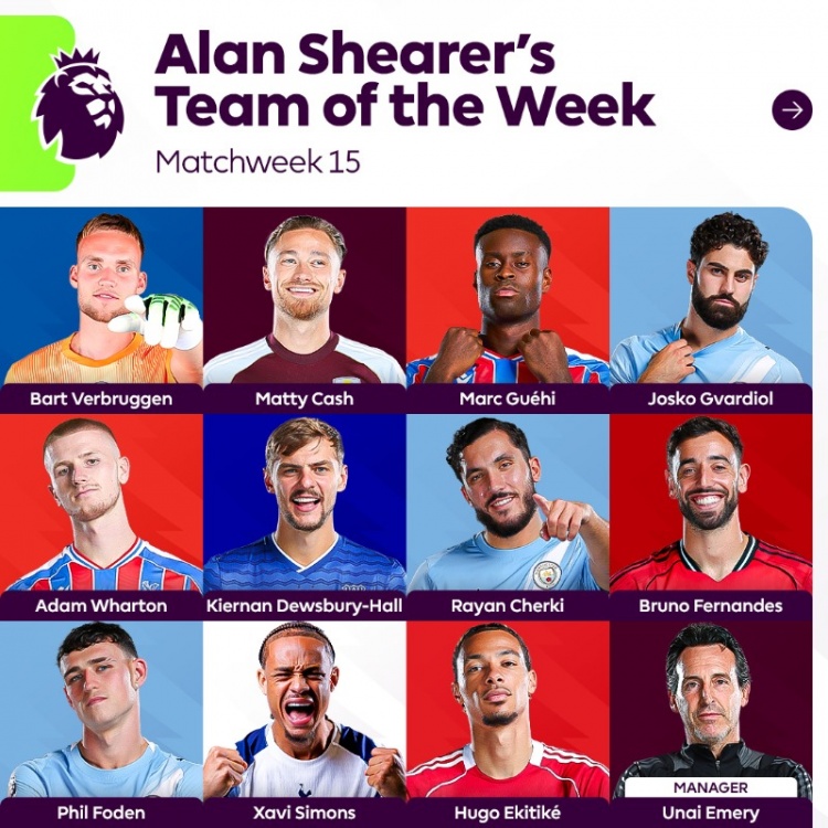 足球比分网12月10日讯 英超第15轮战罢,阿兰·希勒评本轮联赛最佳阵,埃基蒂克、谢尔基、B费、福登在列。 希勒评英超第15轮最佳阵: 门将:维尔布鲁根(布莱顿) 后卫:卡什(阿斯...