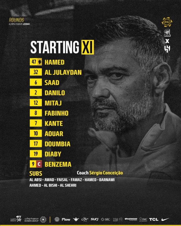 • 吉达联合对阵利雅得新月首发:本泽马PK努涅斯,