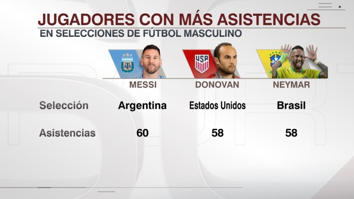 足球比分网10月15日讯 德转今日统计了球员国家队历史助攻榜,其中梅西63次助攻位列榜首,多诺万、内马尔分列二三,C罗45助第6。 球员国家/地区代表队历史助攻榜(数据来源:德转)...