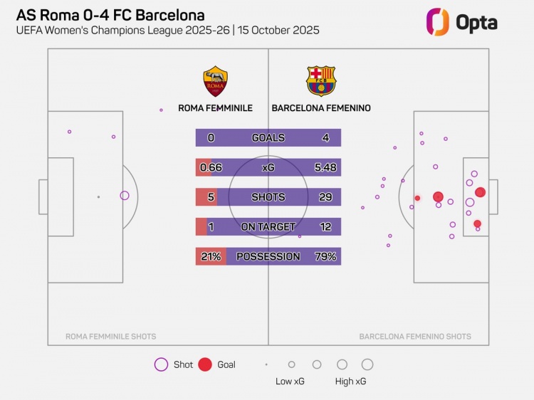 足球比分网10月16日讯 女足欧冠联赛阶段第二轮比赛,巴萨女足客场4-0大胜罗马女足。 据Opta统计,巴萨女足本赛季开局各赛事9连胜,打进48球,仅丢2球,场均进球超过5粒。...