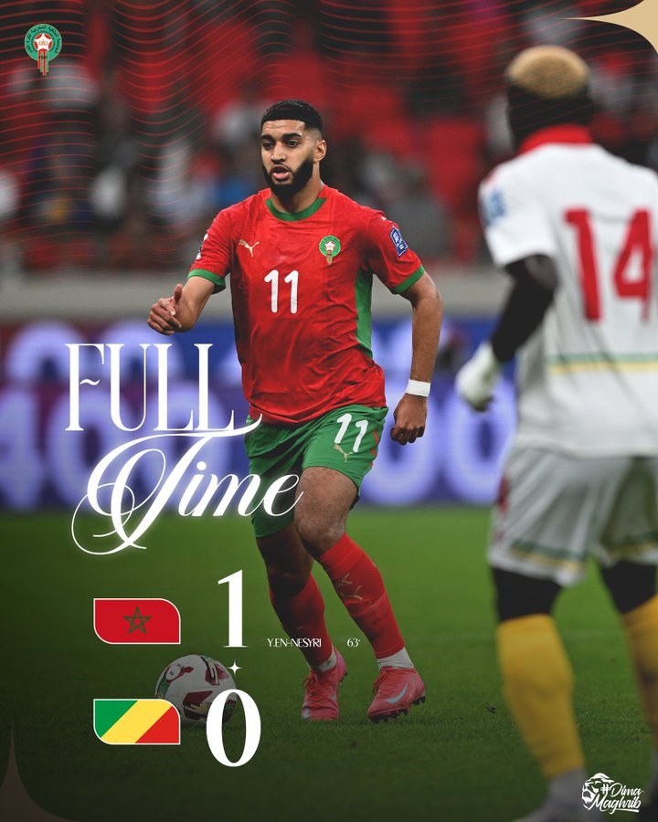 足球比分网10月15日讯 世预赛非洲区最后一轮比赛,摩洛哥主场1-0击败刚果。 此役上半场两队均无建树,下半场阿什拉夫助攻恩内斯里攻入全场唯一进球,帮助摩洛哥主场1-0战胜刚果。...