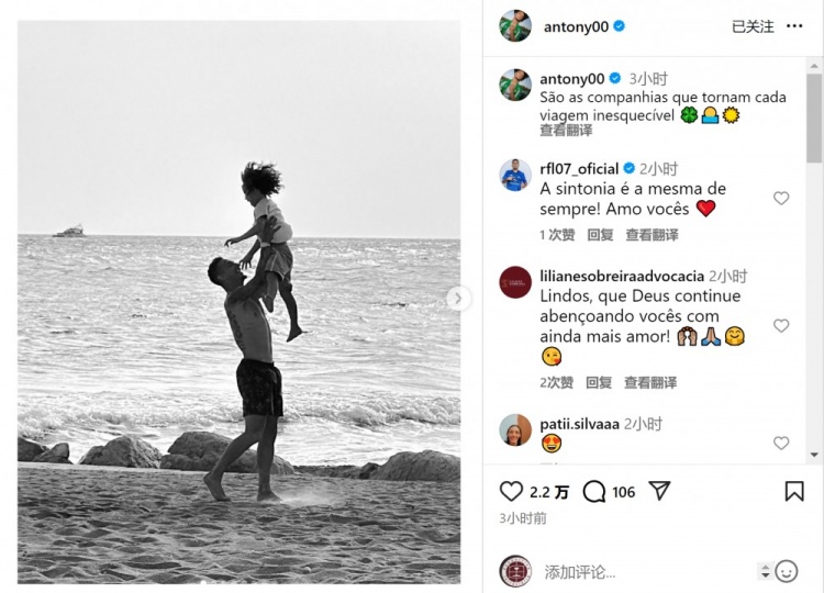 足球比分网10月15日讯 安东尼更新社媒动态,晒出度假照片。 安东尼社媒晒出与家人亲朋一起度假的照片,并配文:“正是这些同行伙伴,让每一次旅程都变得难忘。” 安东尼本赛季为...