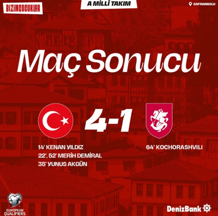 足球比分网10月15日讯 世预赛欧洲区小组赛,土耳其在主场以4-1的比分大胜格鲁吉亚。 本场比赛,伊尔迪兹为土耳其首开纪录,德米拉尔贡献双响,阿克金也有1球入账。比赛第64分钟,...
