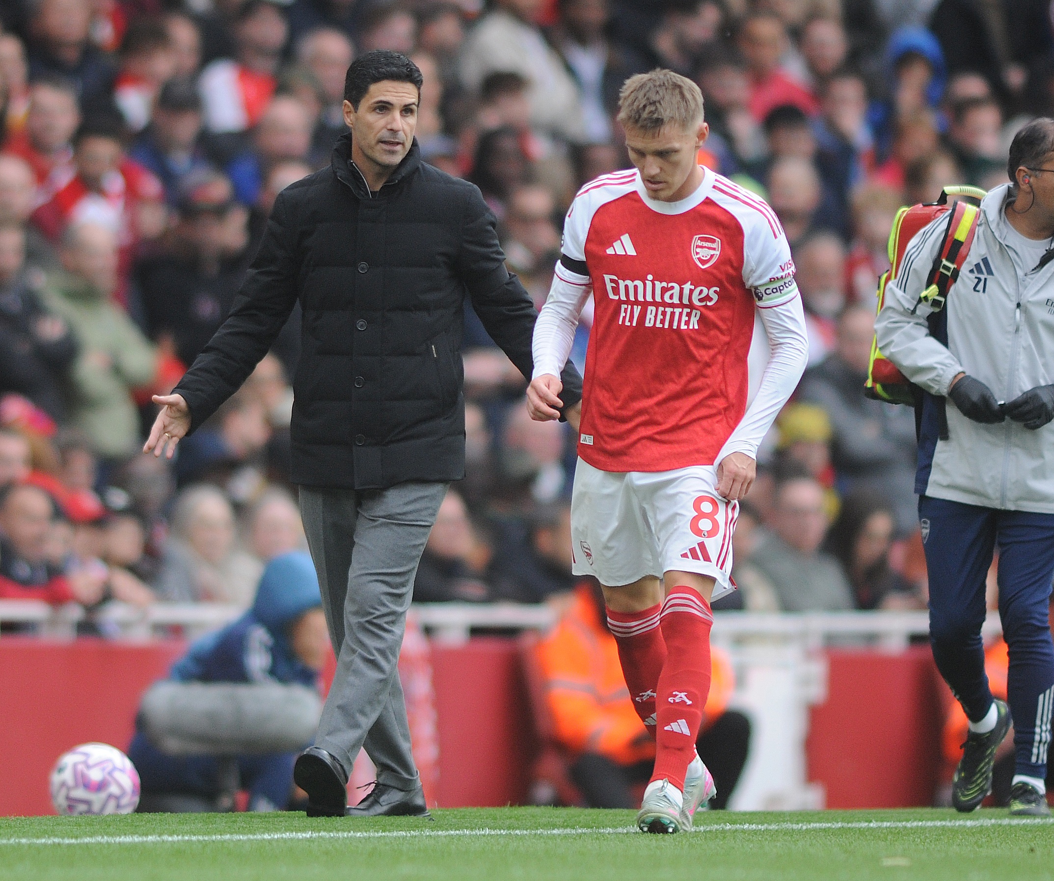 足球比分网10月14日讯 《卫报》报道,阿森纳确认队长厄德高预计将因膝盖伤势缺阵六周。他在国际比赛日前对阵西汉姆联的比赛中与对方球员萨默维尔相撞,导致左膝内侧副韧带受损...