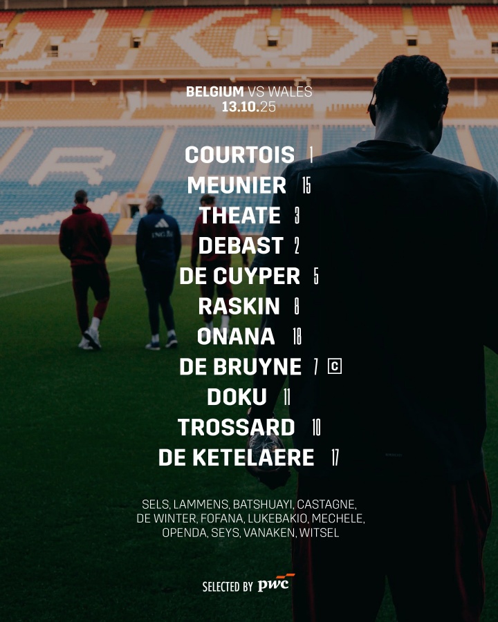 足球比分网10月14日讯 世预赛欧洲区小组赛,比利时将前往客场挑战威尔士。目前,比利时方面已经公布了本场比赛首发阵容,德布劳内、库尔图瓦领衔,特罗萨德、德凯特拉雷出战。...