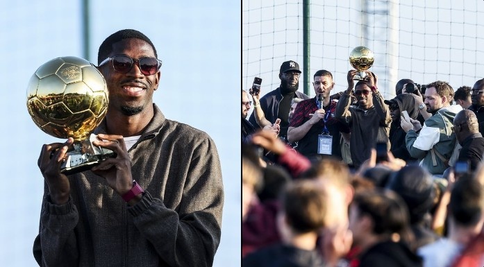 足球比分网10月13日讯 登贝莱荣膺今年的金球奖,据法国足协官方报道,今日他带着金球奖衣锦还乡。 法国足协晒照,登贝莱回到成长之地埃夫勒,向家乡人民展示了他的金球奖。...